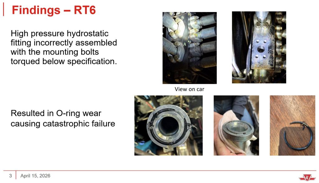 At its April 16 meeting, the TTC Board received a preliminary report from Hatch, the consulting engineers who also reviewed a similar incident in 2024. The images in this article are taken from the Hatch presentation deck.