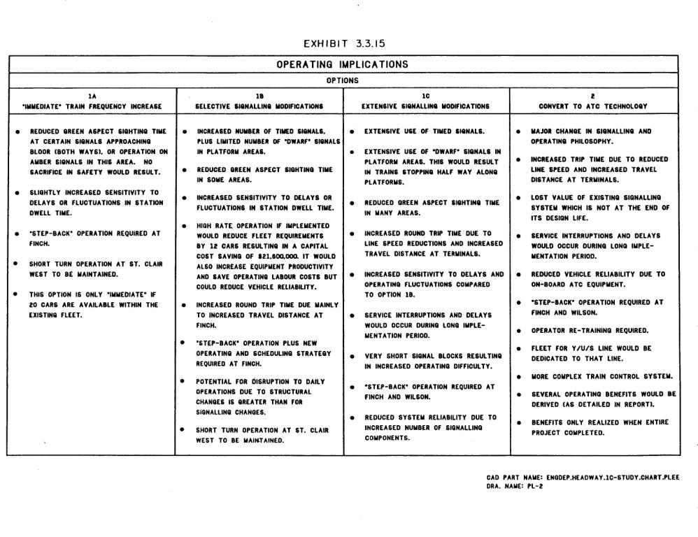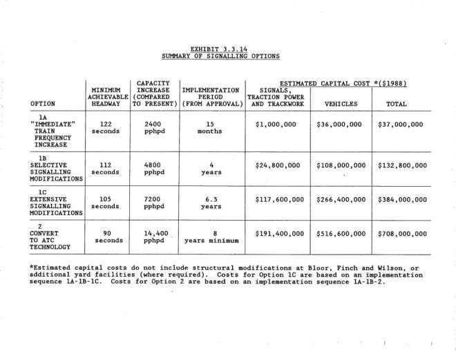 Exhibit 3.3.14 summarizes the information for the four options. Note that this is a $708-million project in 1988 dollars before we even start on the infrastructure changes needed to make short headways possible.