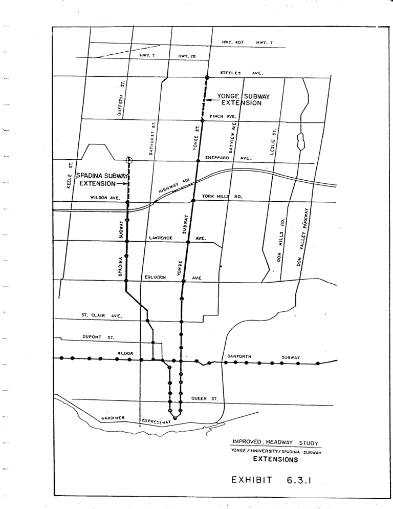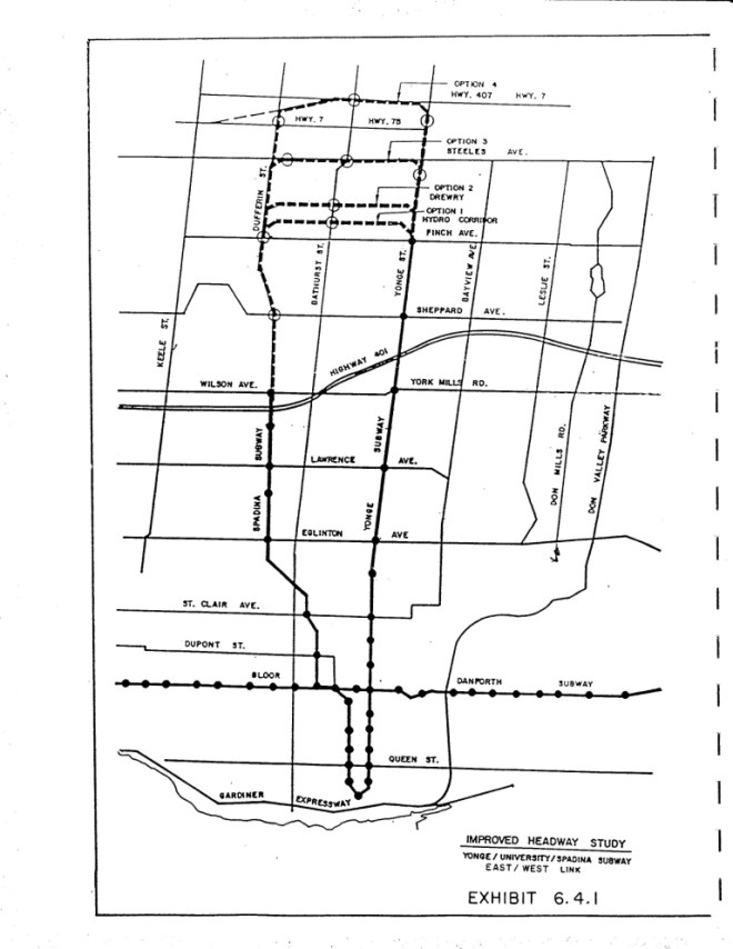 Note that the Spadina line would have continued north on Dufferin rather than swinging northwest through York University.