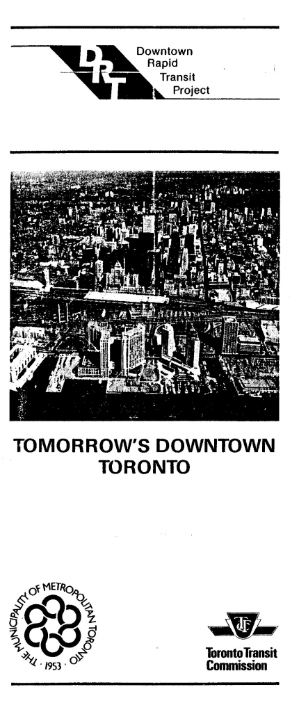 Ten years later, the TTC was working on the Downtown Rapid Transit Study, and the route had morphed into an ICTS line to Union Station.