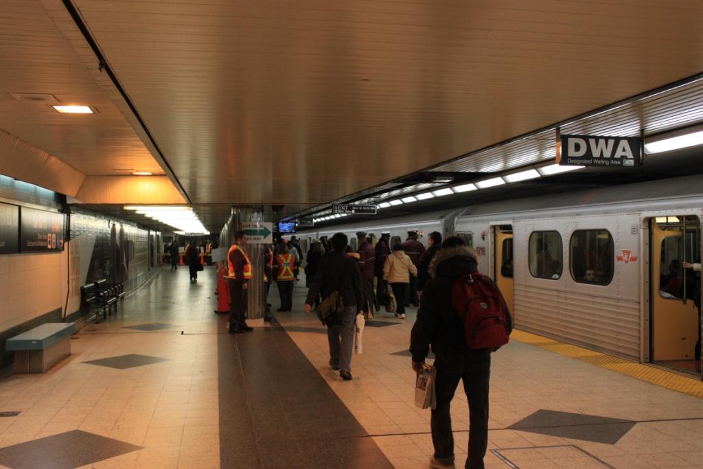 The B-D platforms at Bloor-Yonge are another – few ever stand at the west end of the platform (near the exit to Yonge Street). Wellesley, College and Dundas are also problematic because they have single exits (hopefully this will be fixed soon).