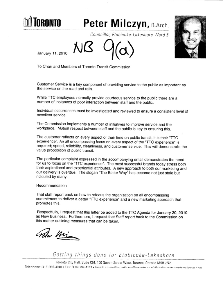 On January 27, the TTC announced a number of new programs and policies designed to substantially improve all aspects of customer service. I won’t go into all of the details, but for those who have not seen them, you can follow the links below.