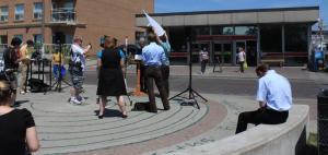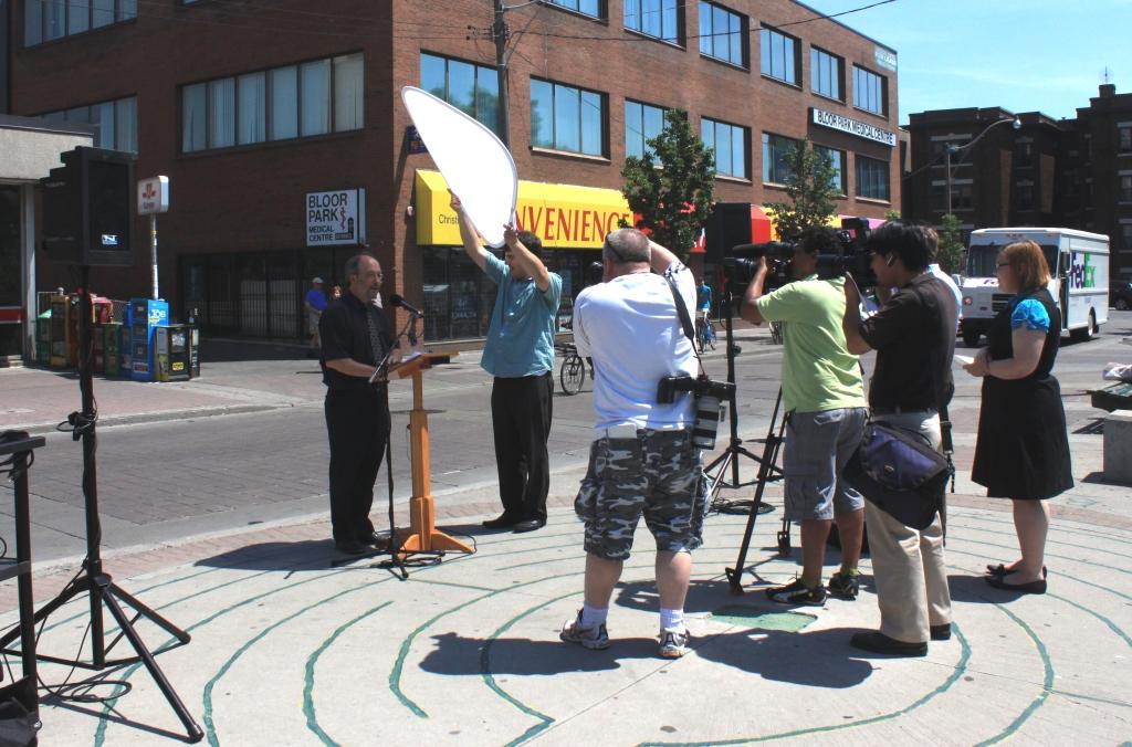 The press conference was unusual in that it had no TTC official presence, and it was conducted, at least initially, outside of the station. It was very hot, and Mihevc’s assistant Anthony Schein held a reflector to act as a parasol.