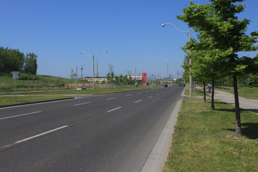 This is the view west along Lake Shore at the point where Knox connects to the right. At this point, Lake Shore is a divided highway. The carhouse property is to the south at the rise of land in the photo. This area will be regraded for carhouse use, and a 2.5m berm is shown on the site plan.