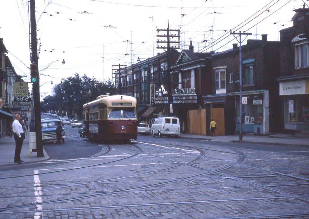 Published August 4, 2012 at 1024 × 726 in Looking Back: Services to the CNE ← Previous Next → Roncesvalles and Howard Park A Dundas Exhibition car northbound on Roncesvalles at Howard Park. The Revue Cinema still had its original marquee, and Roncesvalles would not begin to gentrify for a few decades.