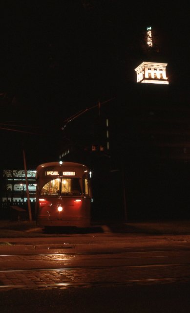 Published December 25, 2012 at 389 × 640 in Looking Back: Toronto By Night I ← Previous Next → McCaul Loop Ex-Birmingham car 4732 sits in McCaul Loop under the Canada Life weather beacon. The Village by the Grange had not yet been built over the site. May 1972.