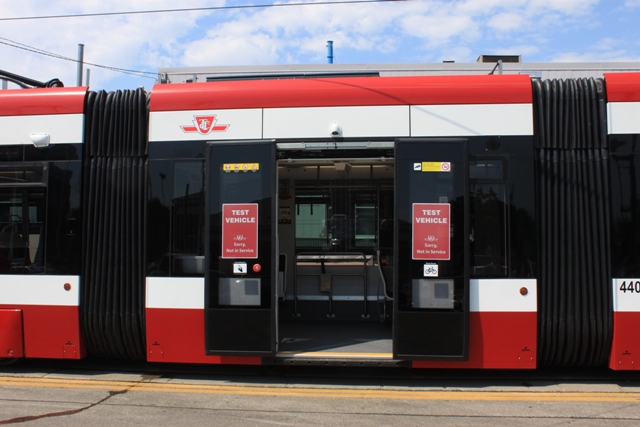 Car 4400 is about to move to Ottawa for climate testing at the National Research Council. From there, it will return to Thunder Bay to be retrofitted with improvements developed during the test phase. 4401 and 4402 are still on the property, but they too will go back to Thunder Bay for retrofits. The TTC is holding off giving the green light to the production vehicle run to get the greatest benefit from the testing that remains, but shipments will begin in fall 2013 for a spring 2014 rollout.