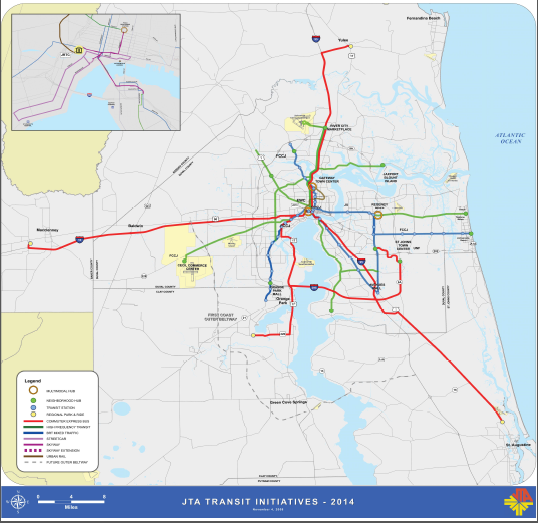 This is not to say rail is ALWAYS the best choice, each mode has its strengths and weaknesses, and opportunity can play a big role. Here in Jacksonville (I’m a planner) the St. Johns River, is a mile wide shipping channel that separates downtown from the Arlington Suburbs and ultimately the Jax. Beaches. We have an older 4 lane expressway that connects downtown with those beaches over a massive 160′ high (Matthews) bridge. Once on the east side of the St. Johns River, that 13 miles becomes 4 lanes of expressway with a two lane access road on either side, for a total of 8 lanes. This is turn key for Bus Rapid Transit, everything is in place for a fast, frequent, deluxe bus service, along a route already heavy with local city buses. It would cost FAR MORE to cross that river again with rail and blow a new right-of-way down the median or alongside the Arlington Expressway then it will for buses.