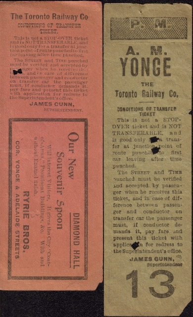 Published March 28, 2014 at 390 × 640 in A Subway Anniversary & A Few Old Transfers ← Previous Next → TRC 1895 & 1905 reverse The reverse of the transfer shows early advertising by Ryrie Bros. which evolved through various partnerships to the company we now know as Birks.