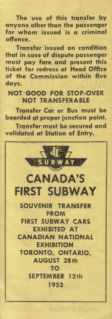 Published March 28, 2014 at 226 × 640 in A Subway Anniversary & A Few Old Transfers ← Previous Next → TTC Subway souvenir reverse
