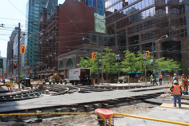 IMG_4949w Published May 22, 2014 at 640 × 427 in Queen & Victoria Reconstruction (Updated May 30, 2014) ← Previous Next → Looking SW across Queen Looking southwest across Queen & Victoria with concrete finishing in progress. May 22, 2014