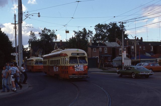 B6_527w Published July 19, 2014 at 640 × 421 in July 19, 1974: The End of the Line on Rogers Road ← Previous Next → Last Rogers Road car on Wychwood enroute to St. Clair Carhouse 1974.07.19