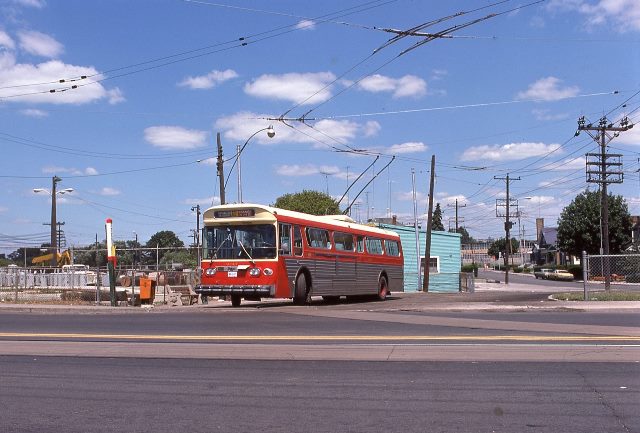 B6_528w Published July 19, 2014 at 640 × 433 in July 19, 1974: The End of the Line on Rogers Road ← Previous Next → First day of trolleybus service at Bicknell Loop 1974.07.21