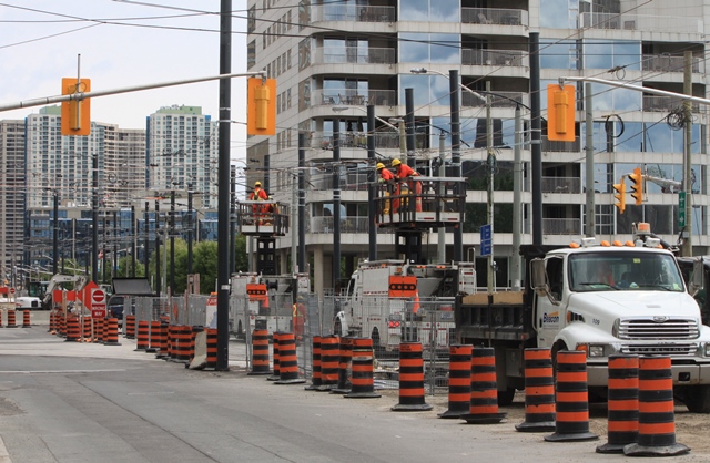 Published July 29, 2014 at 640 × 418 in Queens Quay Reconstruction 2014 (Updated August 21, 2014) ← Previous Next → Overhead construction July 29, 2014