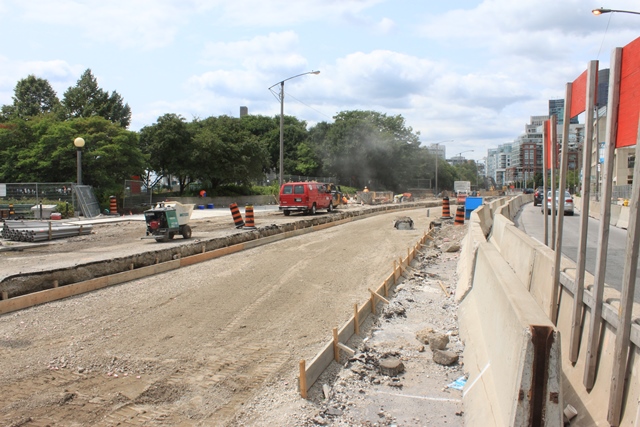 Published July 29, 2014 at 640 × 427 in Queens Quay Reconstruction 2014 (Updated August 21, 2014) ← Previous Next → New trackbed W from Spadina July 29, 2014