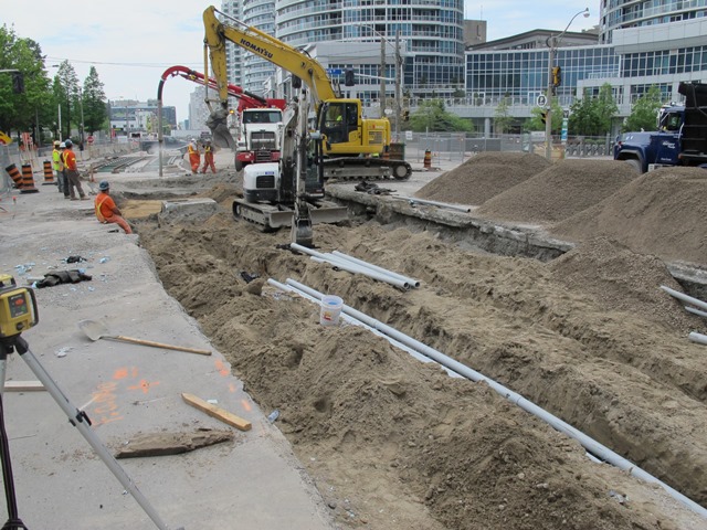 Published June 5, 2014 at 640 × 480 in Queens Quay Reconstruction 2014 (Updated August 21, 2014) ← Previous Next → At York Street Excavation for utilities at York Street looking west. [Photo by Harold McMann] June 2, 2014
