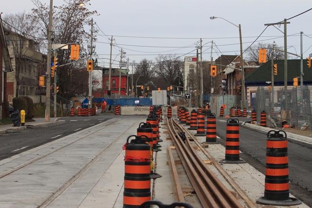 Published December 8, 2014 at 640 × 427 in Building the Connection to Leslie Barns (Updated December 8, 2014) ← Previous Next → Leslie S of Eastern Looking north to Eastern. The rails in the foreground will be installed in the Eastern to Queen block once the foundation is ready to receive them.