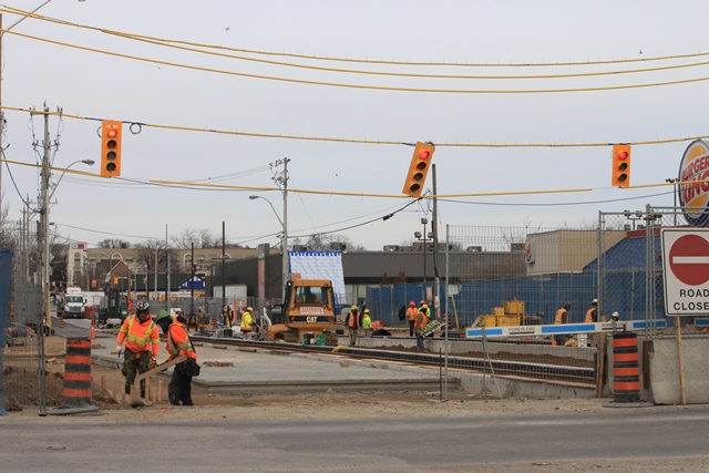 Published December 8, 2014 at 640 × 427 in Building the Connection to Leslie Barns (Updated December 8, 2014) ← Previous Next → Leslie and Lakeshore looking N Looking north at Lake Shore. The southbound track is behind the “Road Closed” sign.