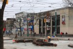 - April 7: Old track on the SE corner of College & Spadina (H. McMann photo)