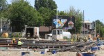 Updated Noveber 20, 2015 at 3:00 pm: Track construction at Russell Carhouse is now complete and overhead installation is in progress.