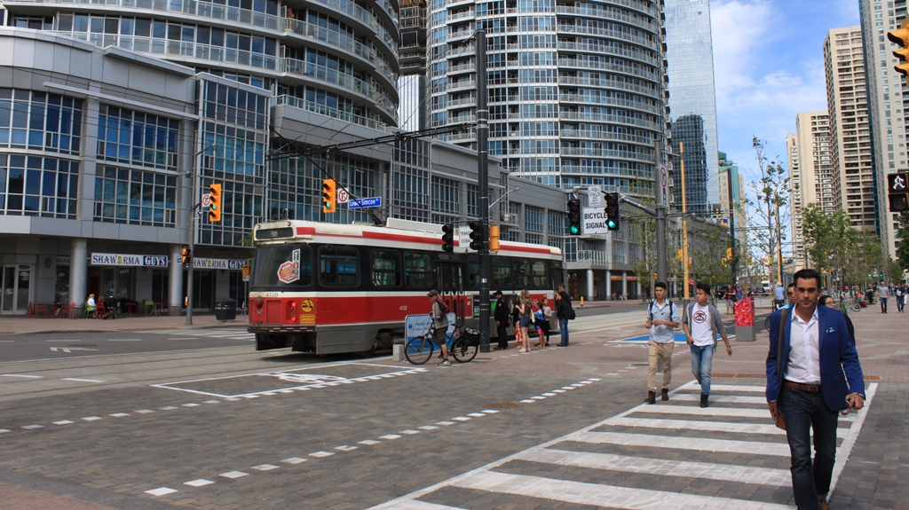 IMG_5881w Published June 19, 2015 at 1024 × 575 in Queens Quay West Reopens As A Grand Boulevard ← Previous Next → Looking east at Lower Simcoe. City-TV’s Adrian Ghobrial walked into my shot and I couldn’t resist including him considering how many “walking shots” I have done for interviews.