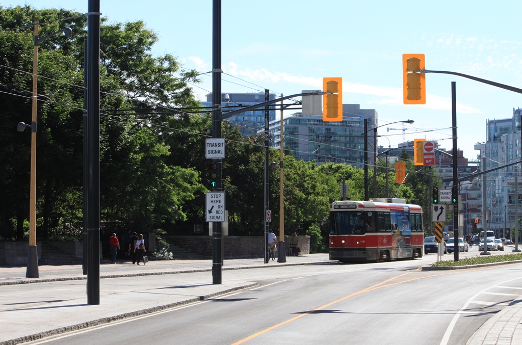 IMG_5915w Published June 19, 2015 at 1024 × 677 in Queens Quay West Reopens As A Grand Boulevard ← Previous Next → Looking west at the Music Garden The end of this phase of the project is at Yo-Yo Ma Lane. Here the road lanes resume their “usual” layout straddling the streetcar lanes. This crossover point is controlled with transit signals separating the streetcars from eastbound motorists.
