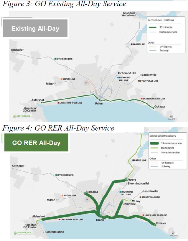 For the benefit of those who have not been following the GO/RER plans, this appendix provides a consolidated view of current intentions. Notably there will be large service increases in peak and especially off-peak operations, and these will trigger the need for major shifts in infrastructure including electrification of much of the GO network.