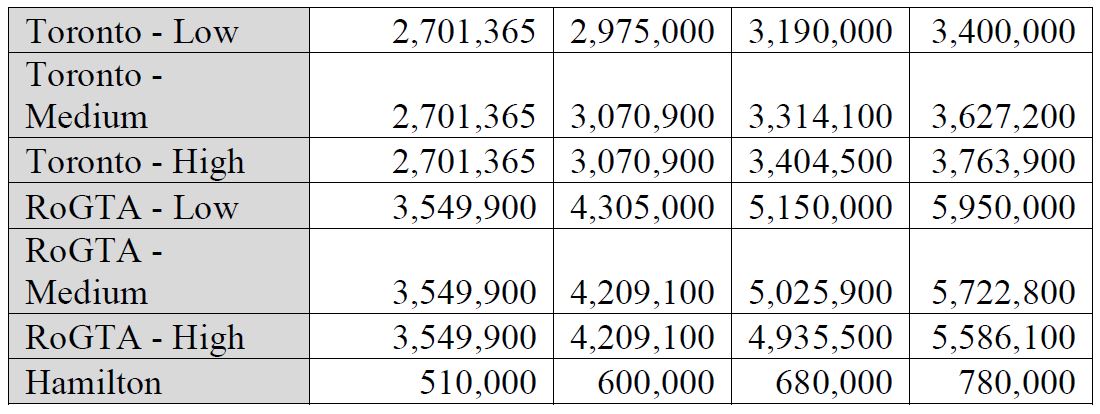 The first and obvious question is “where will development occur”. This brings us back to SRRA who, as mentioned above, had previously held that much development would lie outside of Toronto. They have been commissioned to produce projections of what might occur.