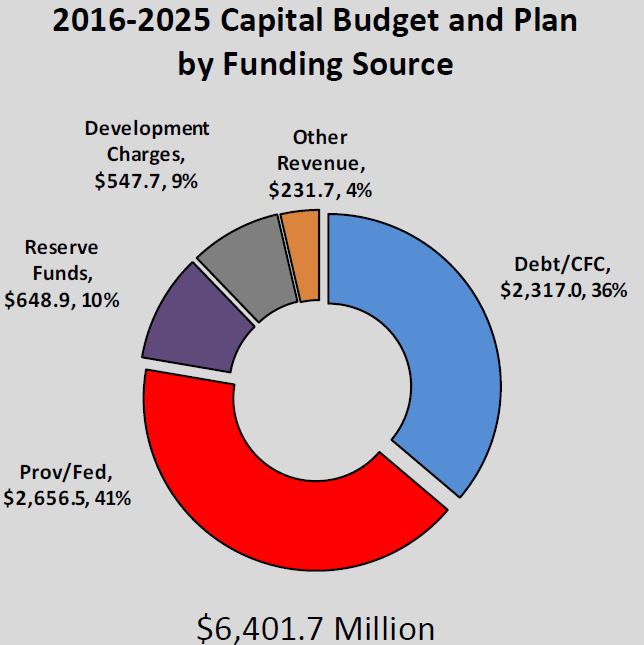 Development Charges are mentioned from time to time as a funding source, but as they now provide less than 10% of the total (and that for an underfunded plan), the ability of DCs to offset much of the shortfall is limited.
