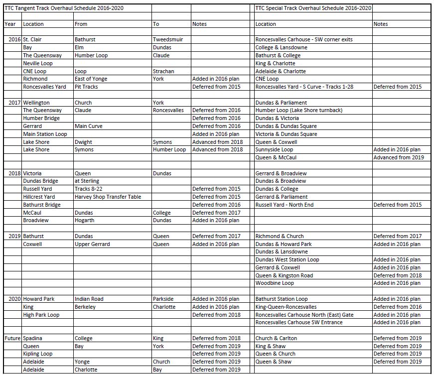 Reconstruction of the north ladder tracks will require that cars back out of the yard onto The Queensway, loop west through Sunnyside Loop, and enter service eastbound from that point. Schedules for all routes based at Roncesvalles will be adjusted with extra running time for their departure trips.