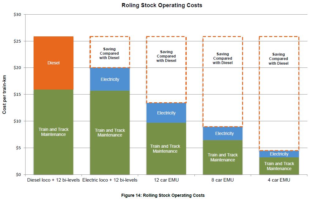 Although there will be additional costs once RER is operating, the report claims that additional revenue will more than offset this because fare revenue goes up more than operating costs, especially considering the savings available with EMU operations over the current diesel-hauled trains.