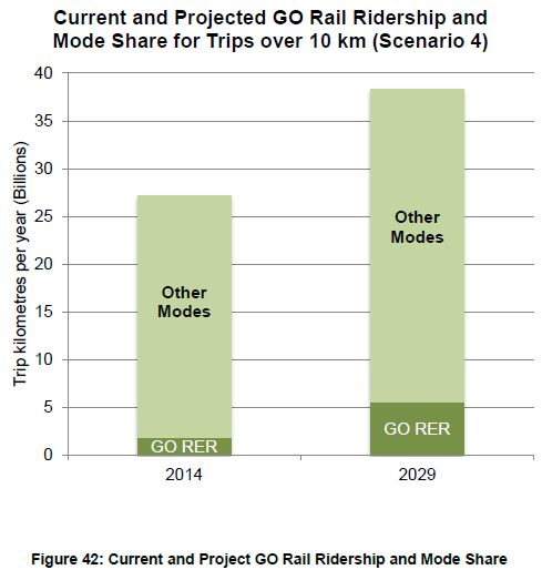 These documents were completed sometime in 2015 as is clear from references to future events that will occur later in the year, notably reports from the City of Toronto on SmartTrack. That scheme gets only passing mention, some of it the usual political cover story, because the specifics had yet to be decided. Exactly what the incremental effect of ST will be beyond the proposed GO/RER configuration is not yet known. Preliminary information in City reports implies that ST will amount to considerably less than was foreseen by the Tory election campaign, possibly as little as a few more stations and some sort of TTC/GO fare integration.