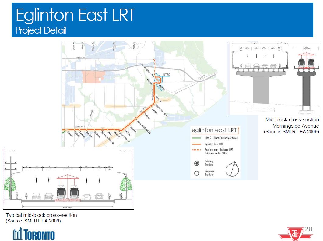 The original cost estimate of $8 billion is little more than a back-of-the-envelope number derived simply by taking the total mileage and multiplying by a notional cost per kilometer. That was back before ST boosters were forced to admit that an “overground” alignment through Mount Dennis, let alone along Eglinton West, was not feasible. This $8 billion was divided three ways – city, province, feds – but Queen’s Park’s caveat was that theirs would be “in kind” through the expansion of GO infrastructure in their RER project. As for Ottawa’s money, we still do not know whether this would be part of Trudeau’s billions soon to flow to cities across the country, or if it will be treated separately, a leftover goodie from the Harper era.