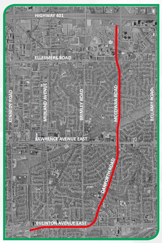 The Scarborough Subway has been under study for a few years with both the configuration and rationale changing along the way. The original scheme was a line from Kennedy Station through the Scarborough Town Centre and north to Sheppard where it would connect with a future east-west line (of indeterminate character). An original list of nine possible corridors was whittled down to three (Midland, McCowan and Bellamy), and of these, the McCowan corridor was selected because: