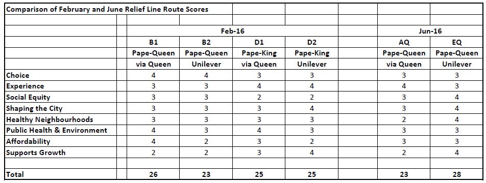 SUPPORTS GROWTH: Another amazing revelation. Planning staff come to realize the Unilever alignment should actually score higher when it comes to supporting future job growth. Why was it lower than AQ/B1 in the first place? New criteria appear to quantitify impact on business and industry during/after construction and they win this category decisively for Queen-Unilever.