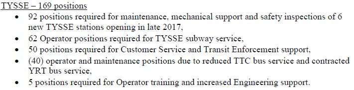 The staffing required to open a subway extension is considerable as shown in this breakdown for the TYSSE. Note that the saving in bus operators is considerably lower than the extra staff needed to operate and maintain the subway.