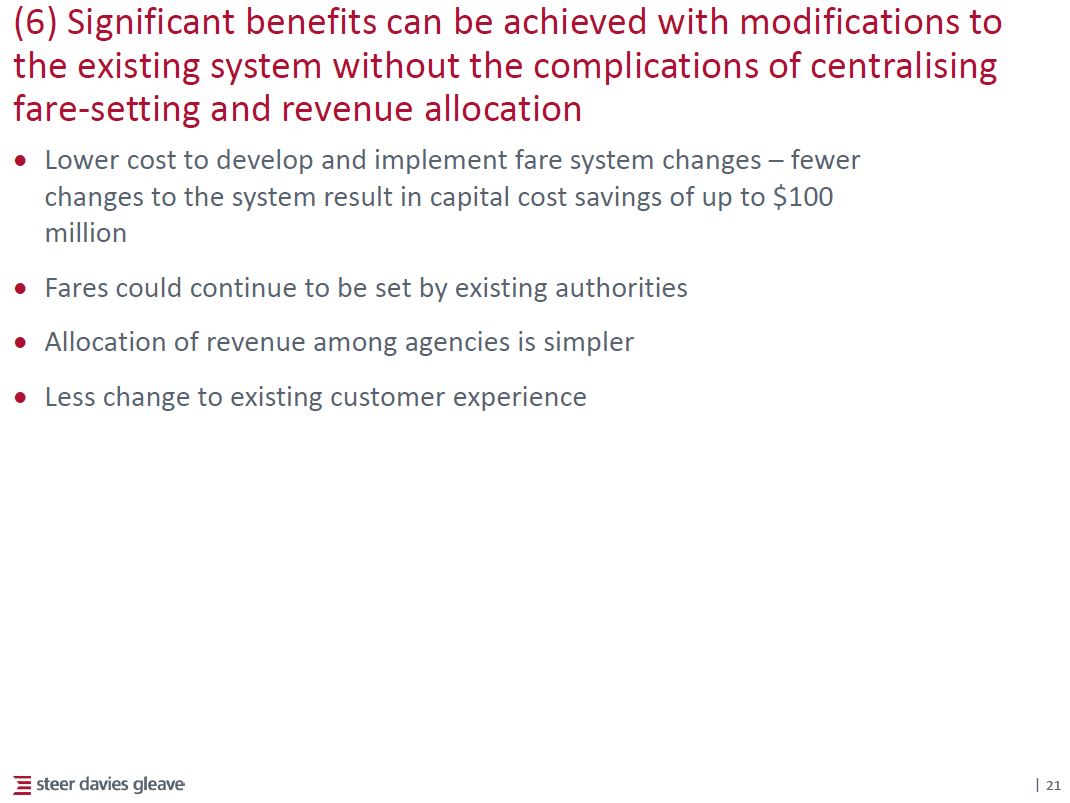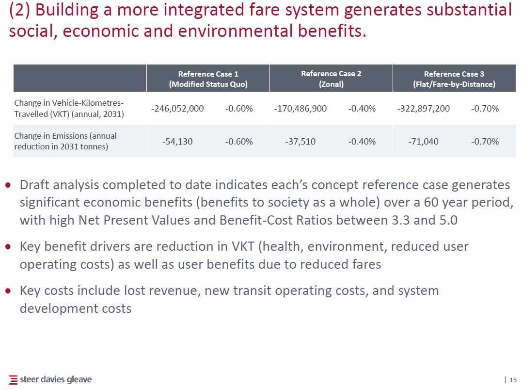 This is a clear case of overstating the “benefits” of a change. When the deltas are all under one percent, these are not “substantial” benefits. Economic indices such as Benefit-Cost ratio are shown as high, but these require a very long life cycle to achieve, and it is still unclear whether the added cost to riders who will now pay more for transit has even been factored into the analysis.