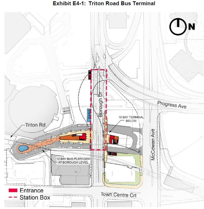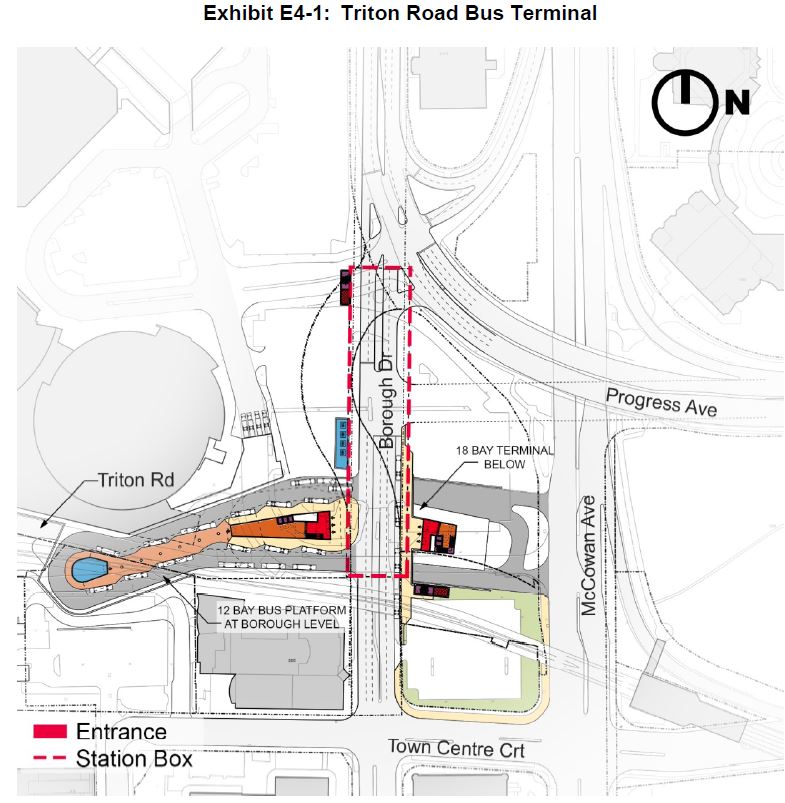 This has been replaced with the Triton Road terminal design shown below. Note the substantial additional development along McCowan where the original terminal would have been located.