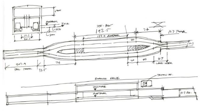 This was reviewed and confirmed that the centre platform layout requires significantly more cut and cover construction to accommodate the track spacing, to transition to a single bore tunnel. As a result, the side platform concept has been carried forward.
