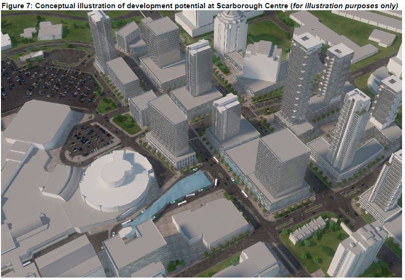 7. Bill R said: “The diagrams regarding the STC station are intended to residents of Scarborough. The STC is served by 4 roads, Brimley, Ellesmere, McCowan and Progress. Three days before Christmas these roads are packed/blocked. How they will ever get the 40+ bus routes to access STC defies reason.”