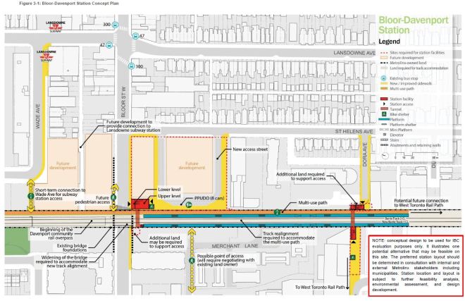 The proposal for a station near Bloor and Lansdowne arises from the long controversy over the Davenport grade separation project on the Barrie corridor. There was a tradeoff between the intrusion of the new bridge and the provision of a station on the GO line.
