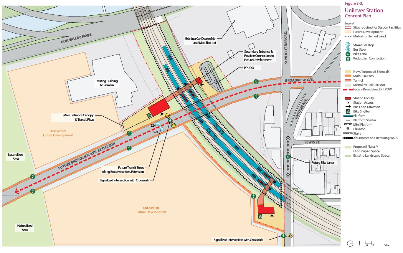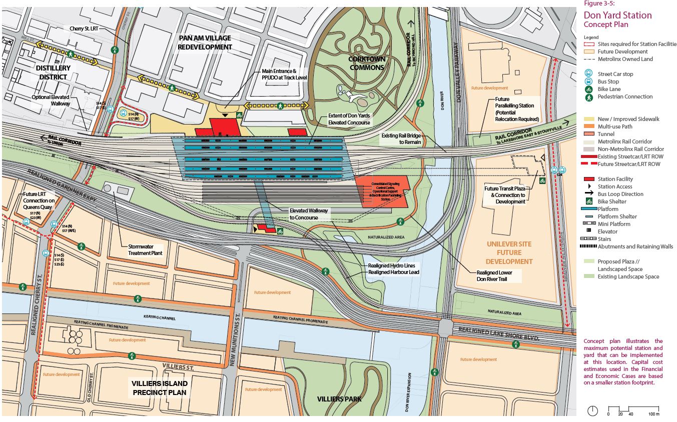 They have an ambitious plan to have the station spanning the Don river. This plan would basically be something of a hybrid between the Unilever and Don Yard Metrolinx proposals.