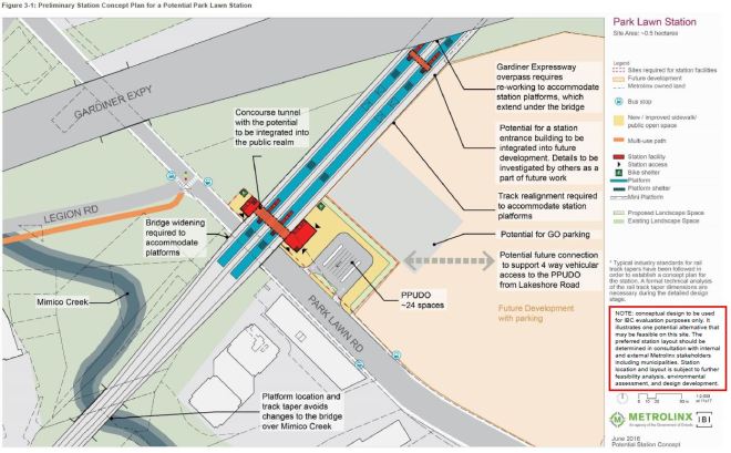 Obviously Metrolinx is not considering or falsely expecting the long term benefits of the potential Park Lawn station. Also, would the current Mimico GO users all be lost? I doubt that as probably at least 1/3 or a half of the population there is already coming from the Park Lawn region. Additionally, there is a capacity to run a ‘Shuttle Bus’ if Metrolinx have not yet thought about the idea. This could well work as of now to the Mimico GO station as well for the potential Park Lawn station.