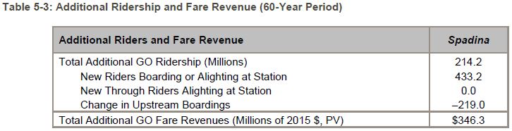 Projected ridership and revenue for Spadina Station are quite strong because it will be a significant destination in the network.