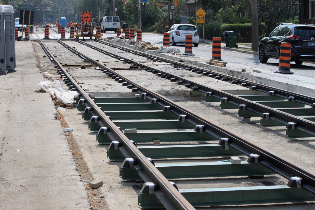 Published September 19, 2017 at 1024 × 683 in Reconstruction of The Queensway and Humber Loop (Updated January 28, 2018) ← Previous Next → 2017.09.19 Looking W toward Symons Street showing reused and new tie structures.