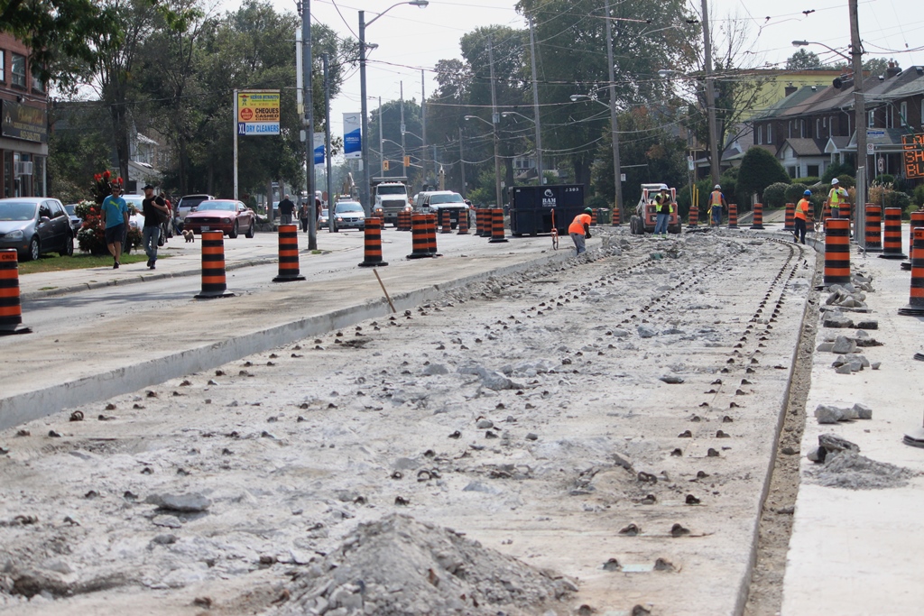 Published September 19, 2017 at 1024 × 683 in Reconstruction of The Queensway and Humber Loop (Updated January 28, 2018) ← Previous Next → 2017.09.19 Looking W from Mimico Ave showing roadbed exposed to the tie layer