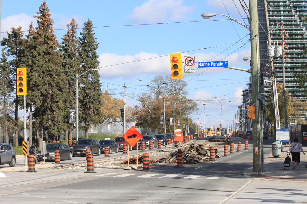 Published November 3, 2017 at 1024 × 683 in Reconstruction of The Queensway and Humber Loop (Updated January 28, 2018) ← Previous Next → 2017.11.03 Lake Shore E at Park Lawn / Marine Parade