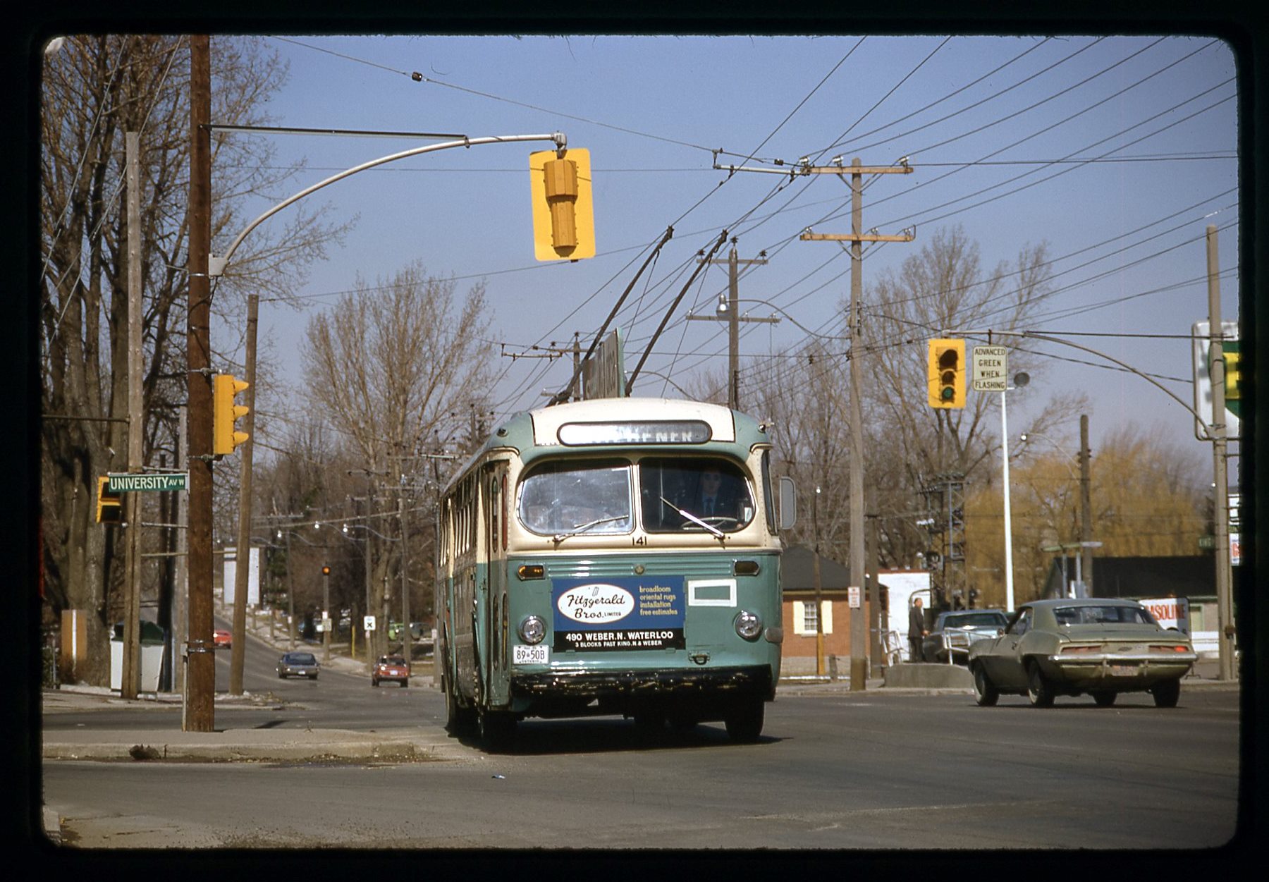 Kit_020 Published June 21, 2017 at 1800 × 1251 in Kitchener Trolleybus Gallery ← Previous Next → King SB at University Loop 1973.03.24