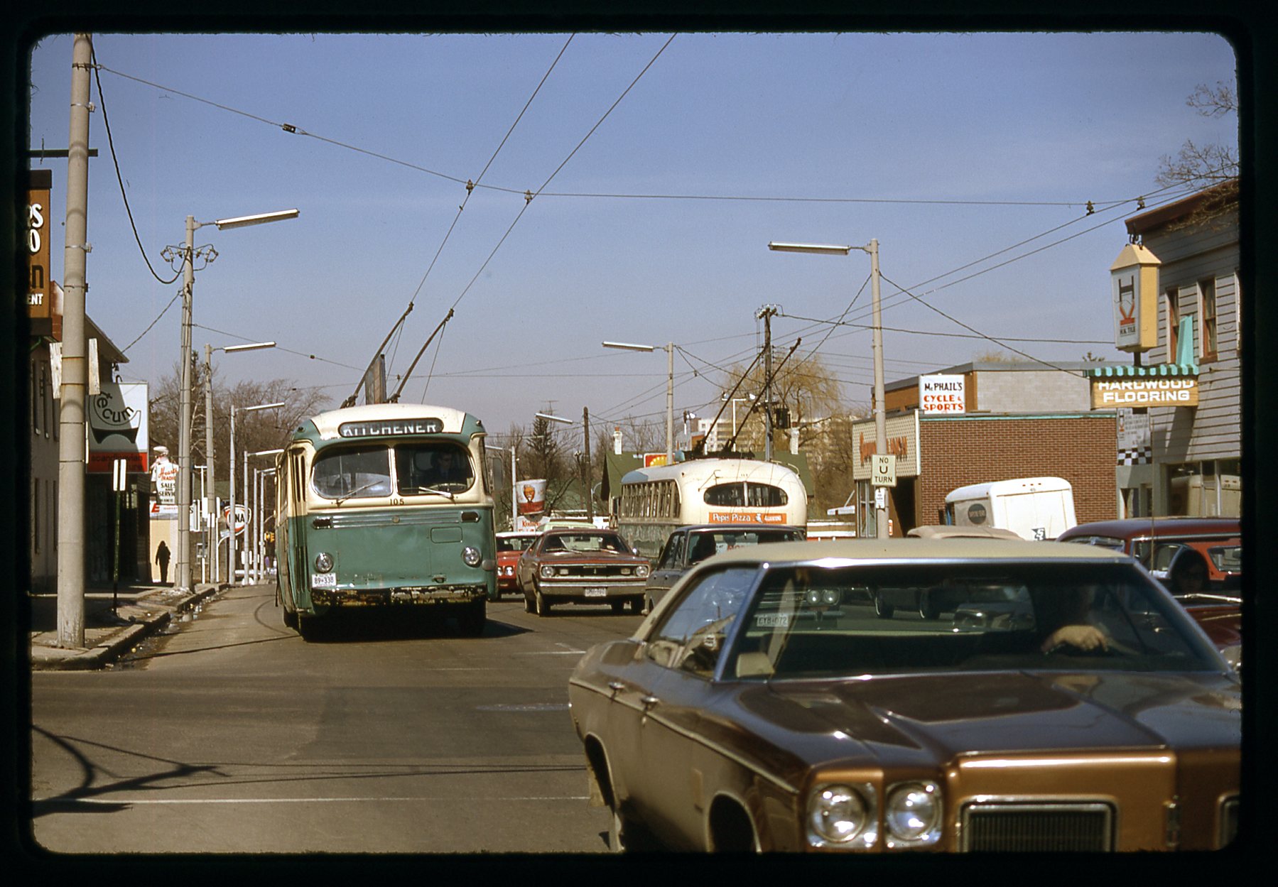 Kit_022 Published June 21, 2017 at 1799 × 1249 in Kitchener Trolleybus Gallery ← Previous Next → King near Young St 1973.03.24