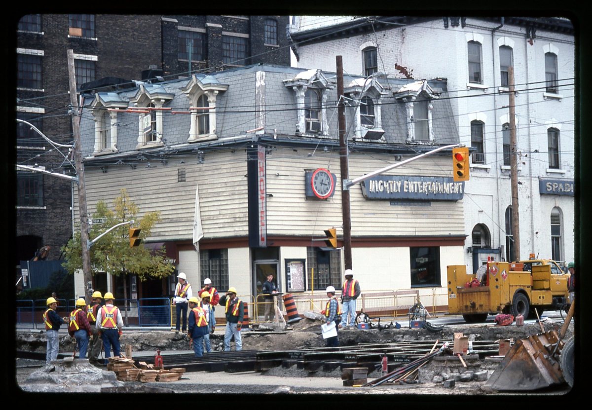 Published July 24, 2017 at 1800 × 1247 in The Spadina Streetcar Turns 20 (Part I) ← Previous Next → Looking NW at King & Spadina